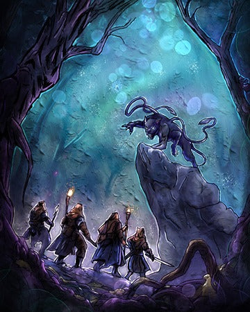 Holographic Poster - Printed on 8.5"x11" 130lb. Cardstock, these posters are dipped in holographic foil prior to printing. This enhances all of the darker tones in each painting (especially the line art), bringing subtle shards of iridescent colors when hit with direct light. This lighting can be either from direct sunlight or an LED light. Avoid displaying in rooms that are damp or generate moisture.