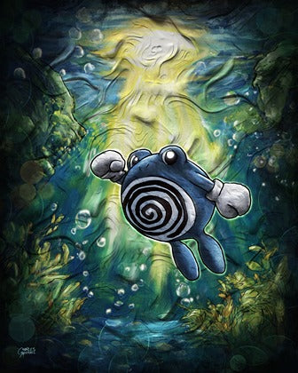 Holographic Poster - Printed on 8.5"x11" 130lb. Cardstock, these posters are dipped in holographic foil prior to printing. This enhances all of the darker tones in each painting (especially the line art), bringing subtle shards of iridescent colors when hit with direct light. This lighting can be either from direct sunlight or an LED light. Avoid displaying in rooms that are damp or generate moisture.