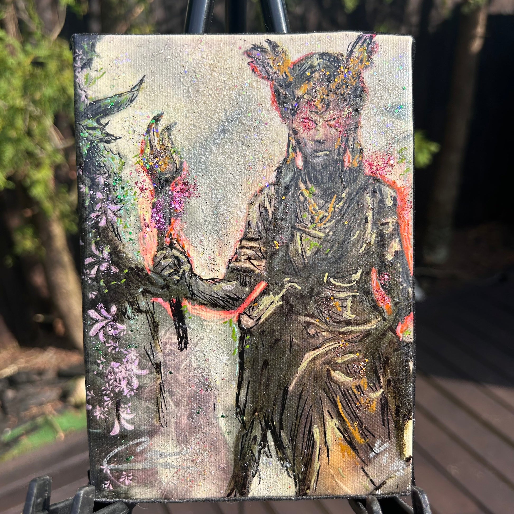 This is a 5x7 Original. While this piece will be painted in 6 other sizes, this is the only one in this size. The paints, powder, and gel application is unique in every painting, making this a one-of-a-kind original.