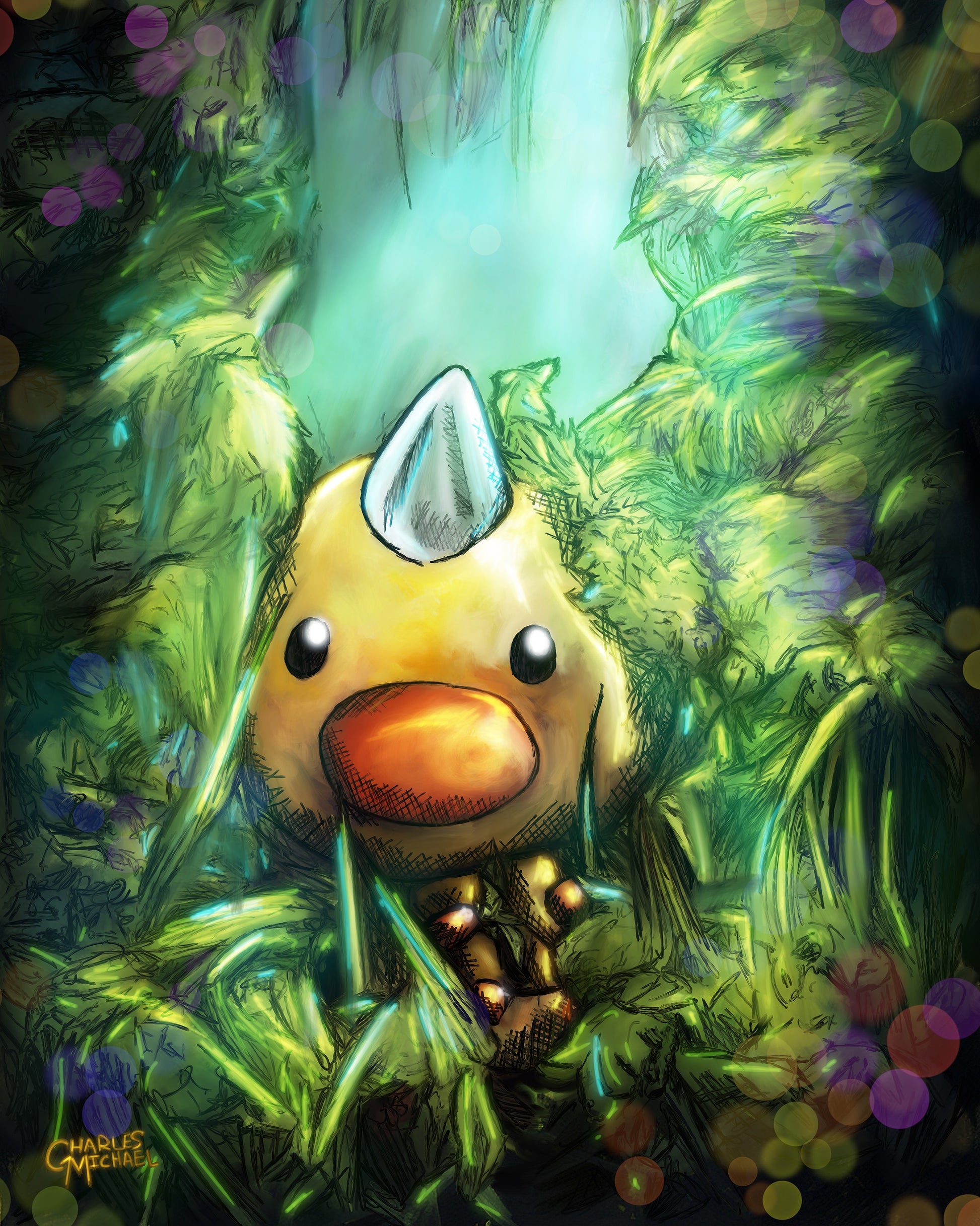 Holographic Poster - Printed on 8.5"x11" 130lb. Cardstock, these posters are dipped in holographic foil prior to printing. This enhances all of the darker tones in each painting (especially the line art), bringing subtle shards of iridescent colors when hit with direct light. This lighting can be either from direct sunlight or an LED light. Avoid displaying in rooms that are damp or generate moisture.