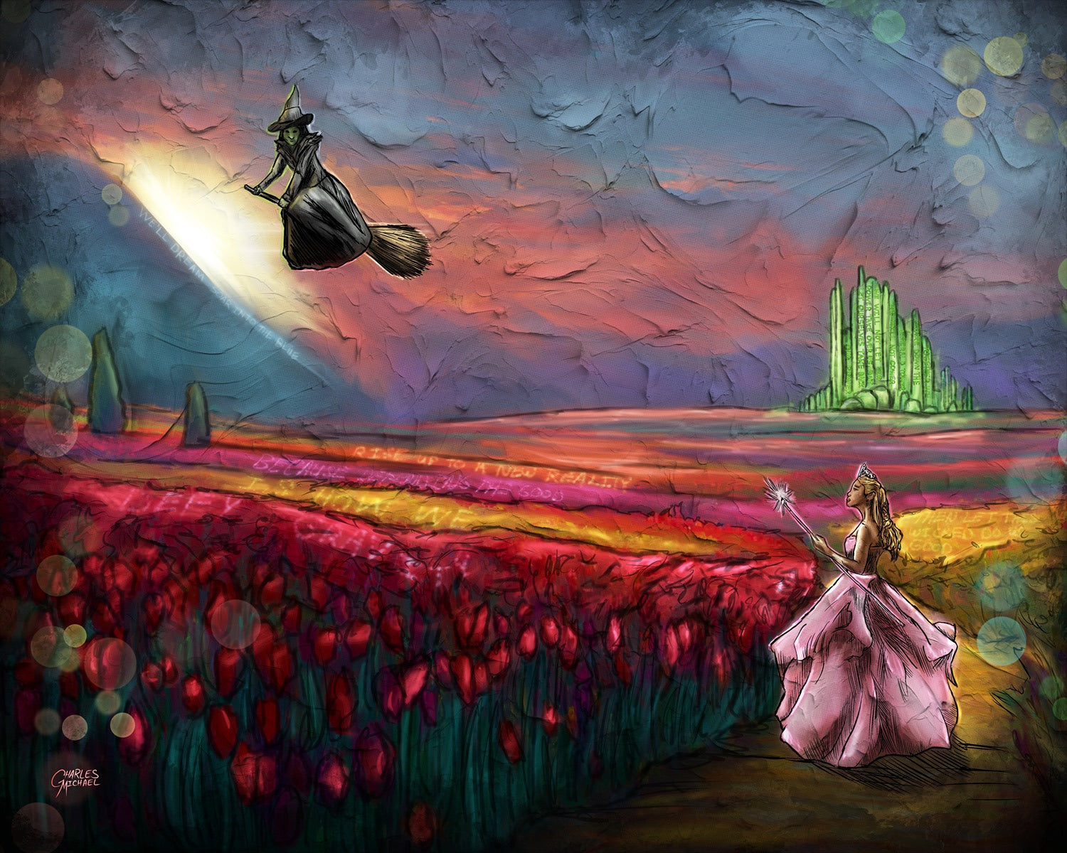 Holographic Poster - Printed on 8.5"x11" 130lb. Cardstock, these posters are dipped in holographic foil prior to printing. This enhances all of the darker tones in each painting (especially the line art), bringing subtle shards of iridescent colors when hit with direct light. This lighting can be either from direct sunlight or an LED light. Avoid displaying in rooms that are damp or generate moisture.