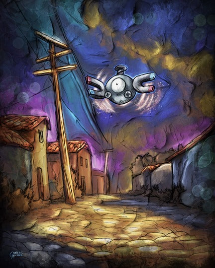 Holographic Poster - Printed on 8.5"x11" 130lb. Cardstock, these posters are dipped in holographic foil prior to printing. This enhances all of the darker tones in each painting (especially the line art), bringing subtle shards of iridescent colors when hit with direct light. This lighting can be either from direct sunlight or an LED light. Avoid displaying in rooms that are damp or generate moisture.