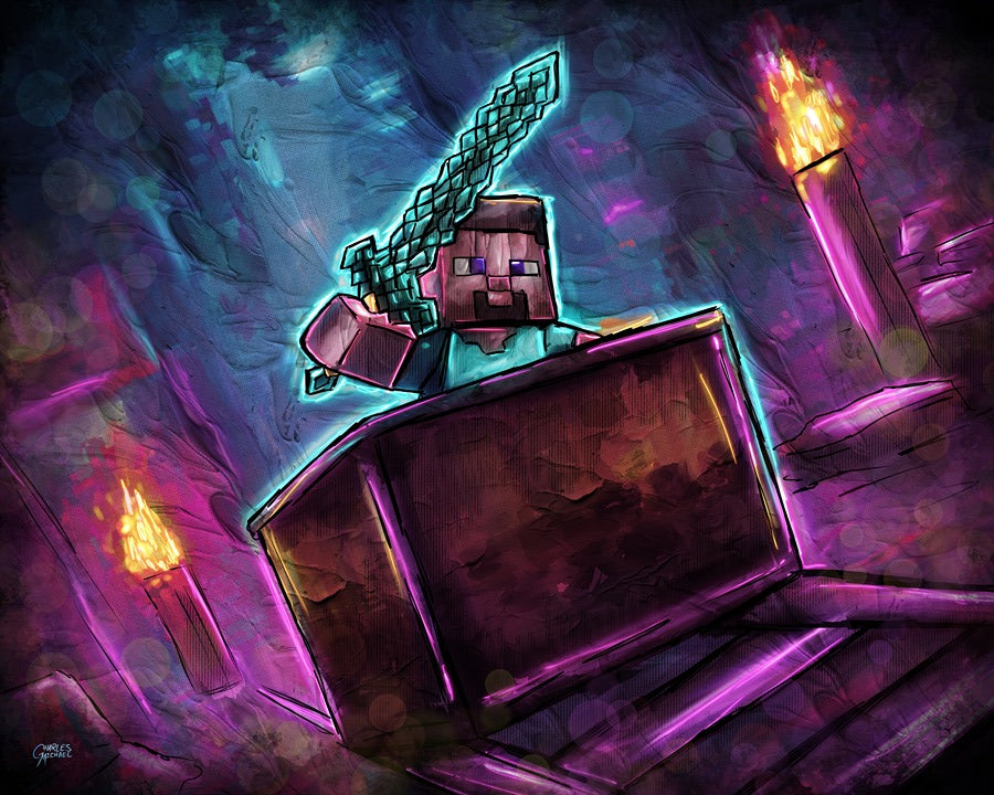 Holographic Poster - Printed on 8.5"x11" 130lb. Cardstock, these posters are dipped in holographic foil prior to printing. This enhances all of the darker tones in each painting (especially the line art), bringing subtle shards of iridescent colors when hit with direct light. This lighting can be either from direct sunlight or an LED light. Avoid displaying in rooms that are damp or generate moisture.