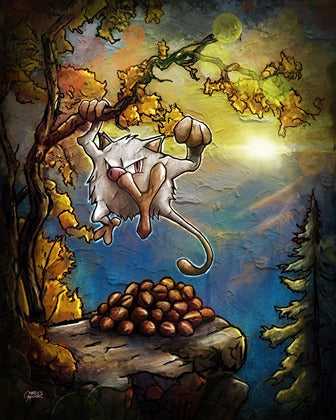 Holographic Poster - Printed on 8.5"x11" 130lb. Cardstock, these posters are dipped in holographic foil prior to printing. This enhances all of the darker tones in each painting (especially the line art), bringing subtle shards of iridescent colors when hit with direct light. This lighting can be either from direct sunlight or an LED light. Avoid displaying in rooms that are damp or generate moisture.