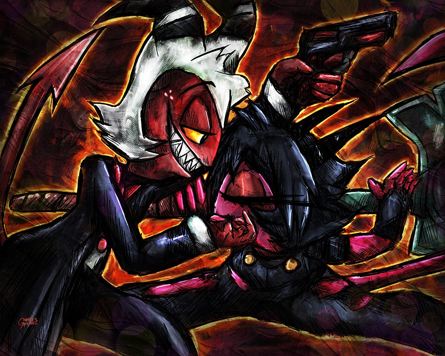 Holographic Poster - Printed on 8.5"x11" 130lb. Cardstock, these posters are dipped in holographic foil prior to printing. This enhances all of the darker tones in each painting (especially the line art), bringing subtle shards of iridescent colors when hit with direct light. This lighting can be either from direct sunlight or an LED light. Avoid displaying in rooms that are damp or generate moisture.