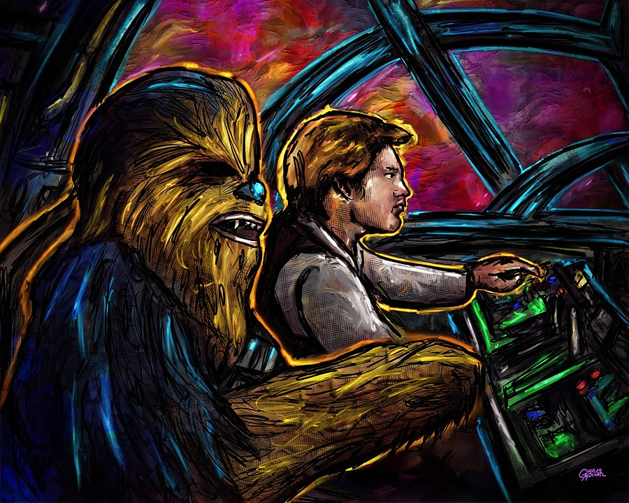 Holographic Poster - Printed on 8.5"x11" 130lb. Cardstock, these posters are dipped in holographic foil prior to printing. This enhances all of the darker tones in each painting (especially the line art), bringing subtle shards of iridescent colors when hit with direct light. This lighting can be either from direct sunlight or an LED light. Avoid displaying in rooms that are damp or generate moisture.