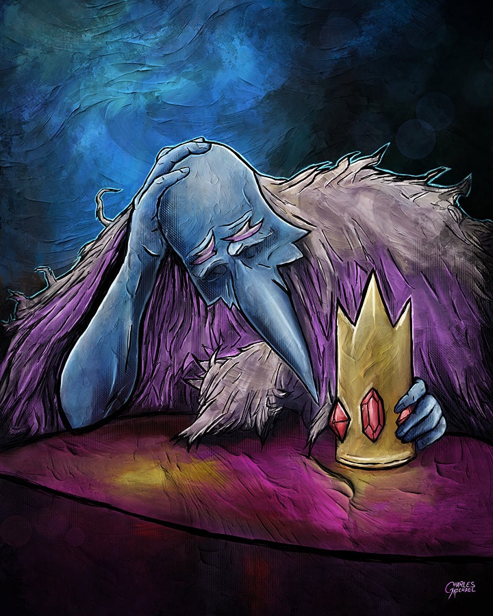 Holographic Poster - Printed on 8.5"x11" 130lb. Cardstock, these posters are dipped in holographic foil prior to printing. This enhances all of the darker tones in each painting (especially the line art), bringing subtle shards of iridescent colors when hit with direct light. This lighting can be either from direct sunlight or an LED light. Avoid displaying in rooms that are damp or generate moisture.