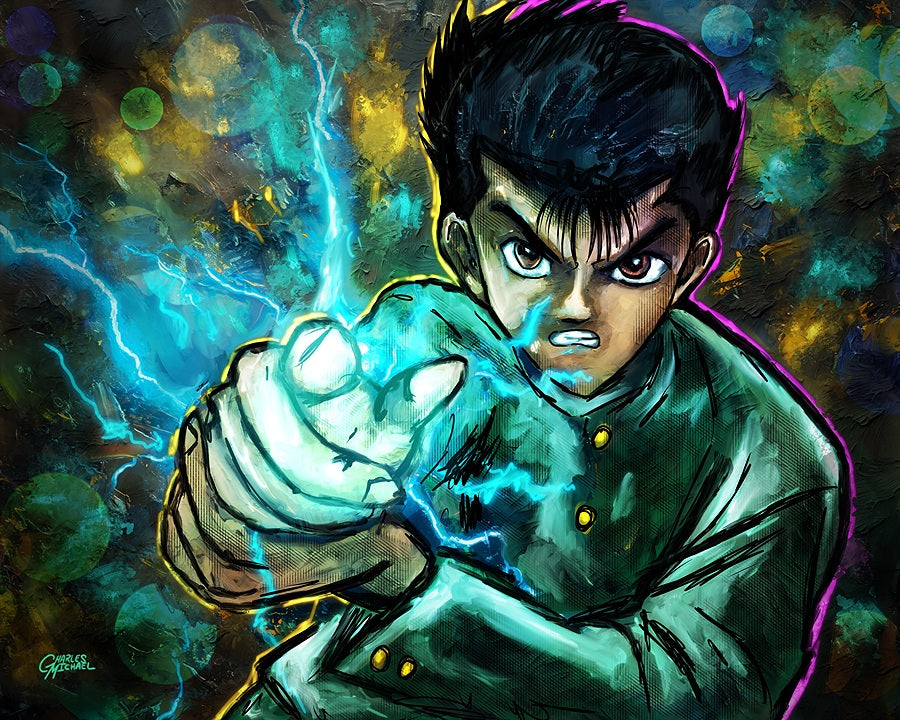 Holographic Poster - Printed on 8.5"x11" 130lb. Cardstock, these posters are dipped in holographic foil prior to printing. This enhances all of the darker tones in each painting (especially the line art), bringing subtle shards of iridescent colors when hit with direct light. This lighting can be either from direct sunlight or an LED light. Avoid displaying in rooms that are damp or generate moisture.