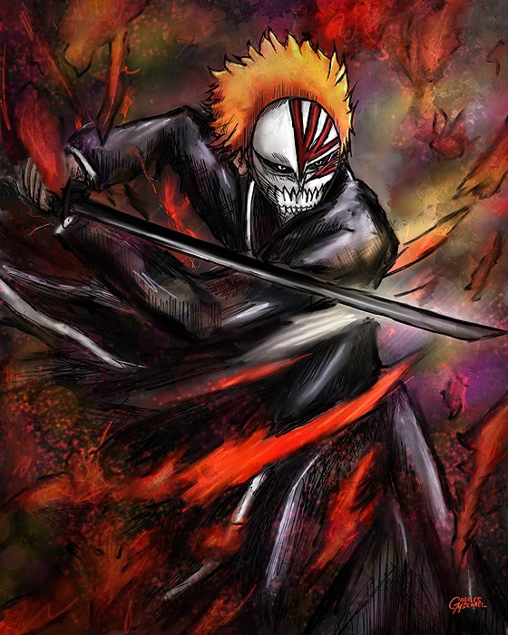 Holographic Poster - Printed on 8.5"x11" 130lb. Cardstock, these posters are dipped in holographic foil prior to printing. This enhances all of the darker tones in each painting (especially the line art), bringing subtle shards of iridescent colors when hit with direct light. This lighting can be either from direct sunlight or an LED light. Avoid displaying in rooms that are damp or generate moisture.