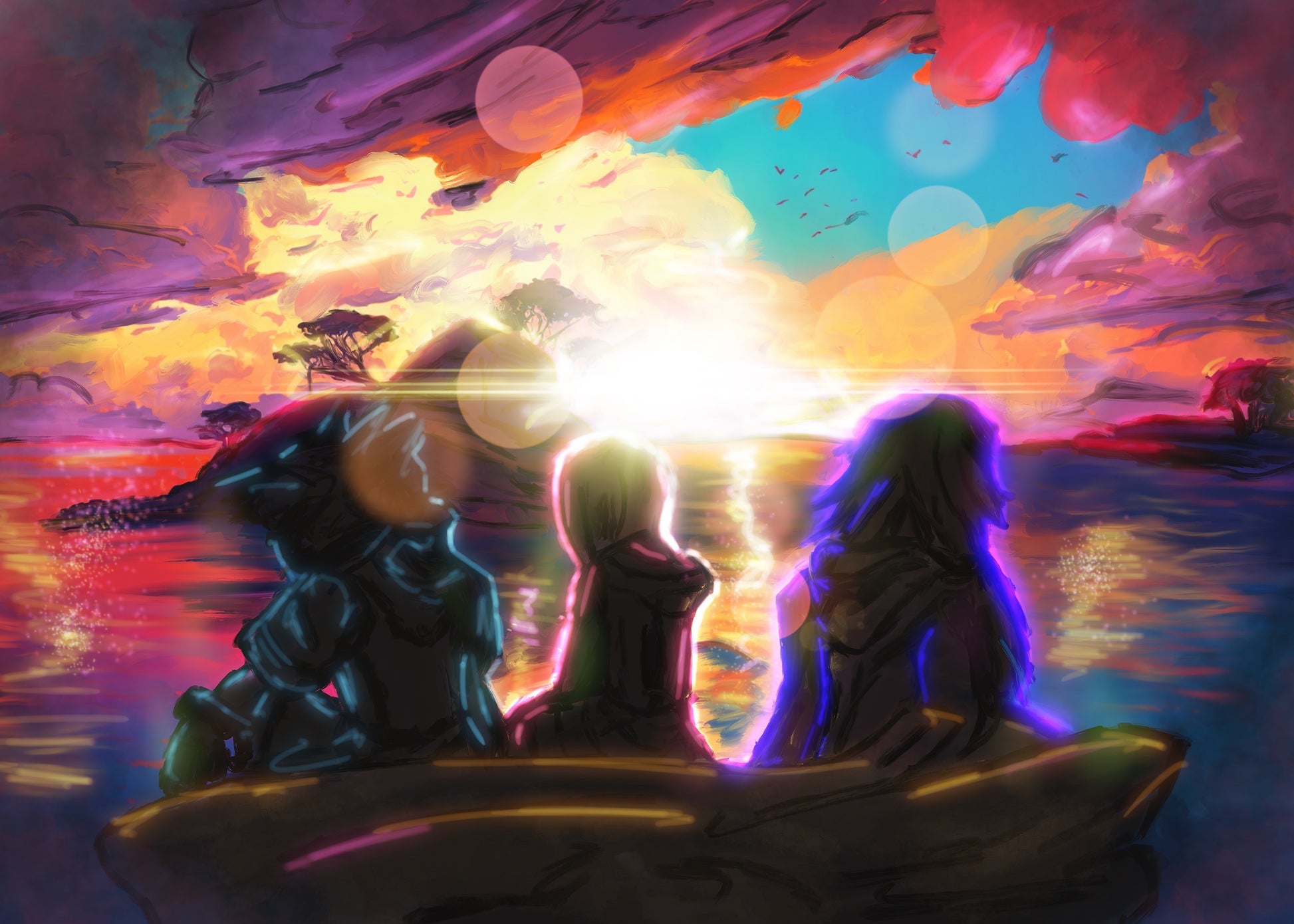 Holographic Poster - Printed on 8.5"x11" 130lb. Cardstock, these posters are dipped in holographic foil prior to printing. This enhances all of the darker tones in each painting (especially the line art), bringing subtle shards of iridescent colors when hit with direct light. This lighting can be either from direct sunlight or an LED light. Avoid displaying in rooms that are damp or generate moisture.