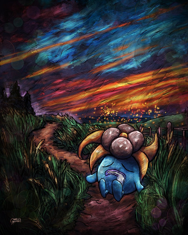 Holographic Poster - Printed on 8.5"x11" 130lb. Cardstock, these posters are dipped in holographic foil prior to printing. This enhances all of the darker tones in each painting (especially the line art), bringing subtle shards of iridescent colors when hit with direct light. This lighting can be either from direct sunlight or an LED light. Avoid displaying in rooms that are damp or generate moisture.