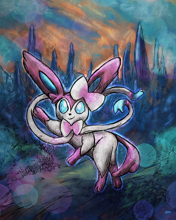 Holographic Poster - Printed on 8.5"x11" 130lb. Cardstock, these posters are dipped in holographic foil prior to printing. This enhances all of the darker tones in each painting (especially the line art), bringing subtle shards of iridescent colors when hit with direct light. This lighting can be either from direct sunlight or an LED light. Avoid displaying in rooms that are damp or generate moisture.