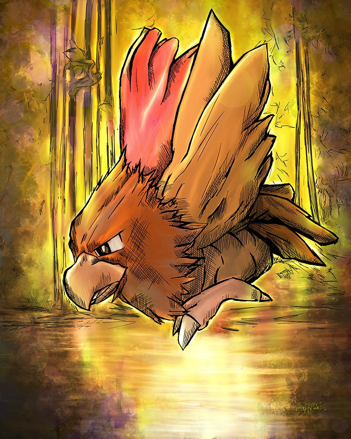 Holographic Poster - Printed on 8.5"x11" 130lb. Cardstock, these posters are dipped in holographic foil prior to printing. This enhances all of the darker tones in each painting (especially the line art), bringing subtle shards of iridescent colors when hit with direct light. This lighting can be either from direct sunlight or an LED light. Avoid displaying in rooms that are damp or generate moisture.