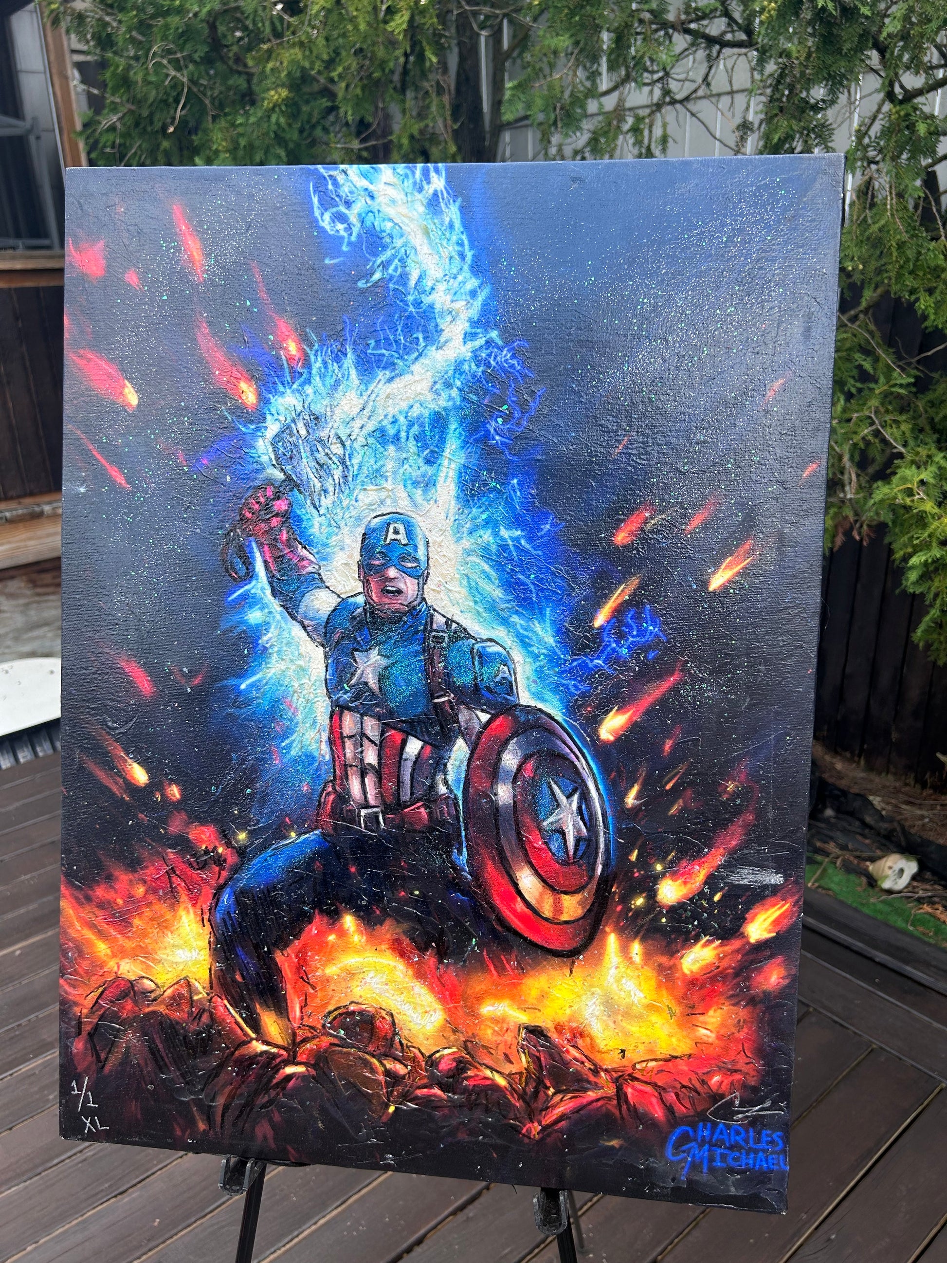 This is a 18"x24" Original. While this piece will be painted in 6 other sizes, this is the only one in this size. The paints, powder, and gel application is unique in every painting, making this a one-of-a-kind original.