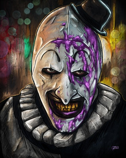 Holographic Poster - Printed on 8.5"x11" 130lb. Cardstock, these posters are dipped in holographic foil prior to printing. This enhances all of the darker tones in each painting (especially the line art), bringing subtle shards of iridescent colors when hit with direct light. This lighting can be either from direct sunlight or an LED light. Avoid displaying in rooms that are damp or generate moisture.