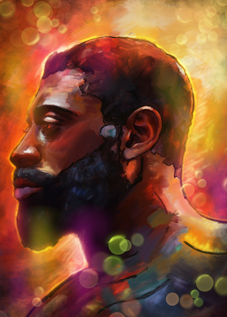 Holographic Poster - Printed on 8.5"x11" 130lb. Cardstock, these posters are dipped in holographic foil prior to printing. This enhances all of the darker tones in each painting (especially the line art), bringing subtle shards of iridescent colors when hit with direct light. This lighting can be either from direct sunlight or an LED light. Avoid displaying in rooms that are damp or generate moisture.
