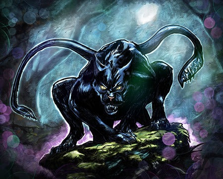 Holographic Poster - Printed on 8.5"x11" 130lb. Cardstock, these posters are dipped in holographic foil prior to printing. This enhances all of the darker tones in each painting (especially the line art), bringing subtle shards of iridescent colors when hit with direct light. This lighting can be either from direct sunlight or an LED light. Avoid displaying in rooms that are damp or generate moisture.