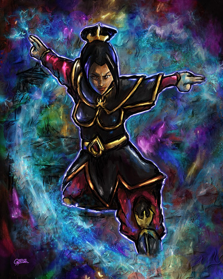 Holographic Poster - Printed on 8.5"x11" 130lb. Cardstock, these posters are dipped in holographic foil prior to printing. This enhances all of the darker tones in each painting (especially the line art), bringing subtle shards of iridescent colors when hit with direct light. This lighting can be either from direct sunlight or an LED light. Avoid displaying in rooms that are damp or generate moisture.