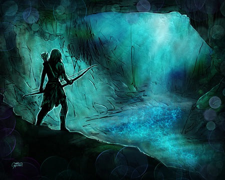 Holographic Poster - Printed on 8.5"x11" 130lb. Cardstock, these posters are dipped in holographic foil prior to printing. This enhances all of the darker tones in each painting (especially the line art), bringing subtle shards of iridescent colors when hit with direct light. This lighting can be either from direct sunlight or an LED light. Avoid displaying in rooms that are damp or generate moisture.