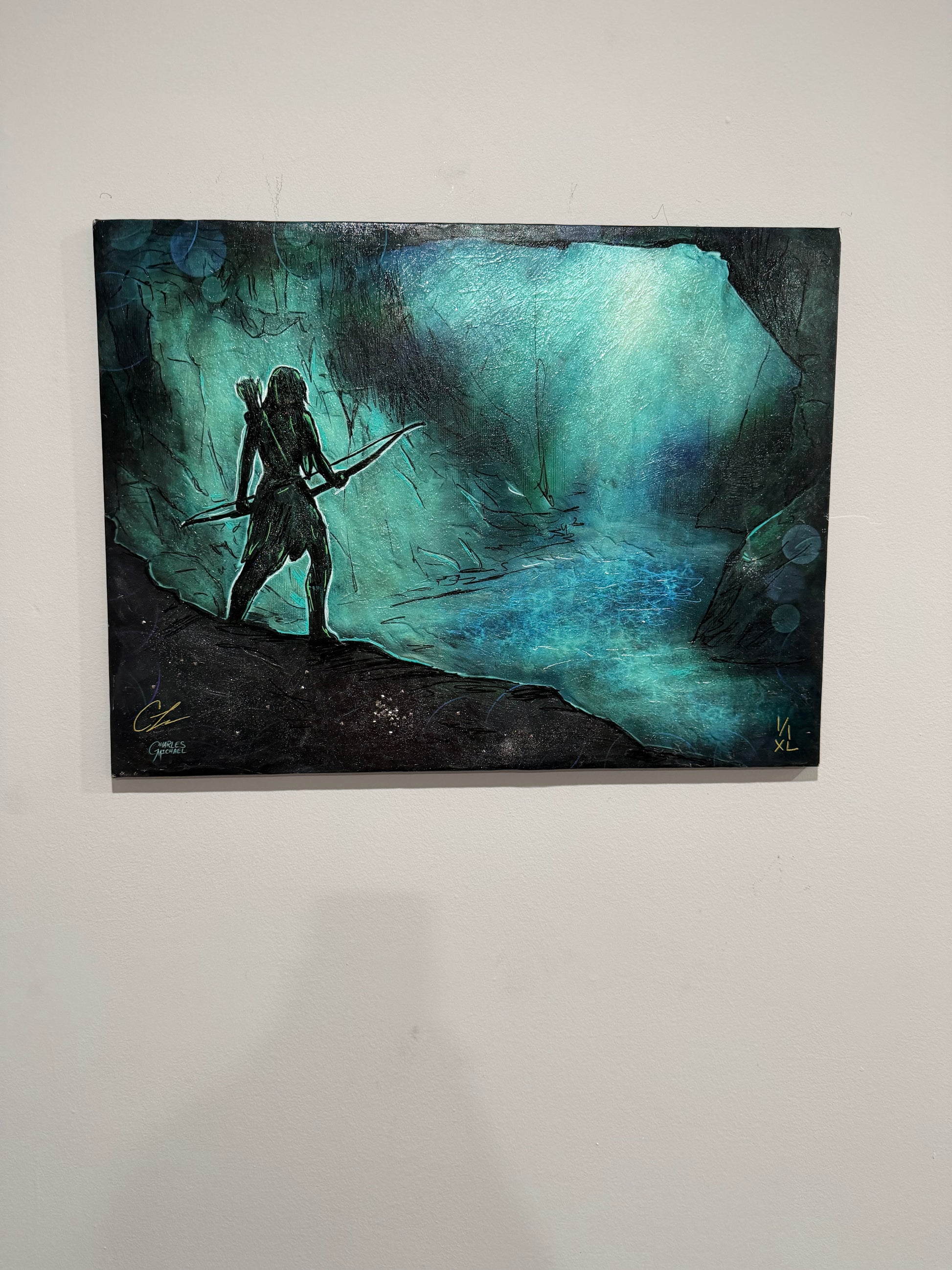 This is a 18"x24" Original. While this piece will be painted in 6 other sizes, this is the only one in this size. The paints, powder, and gel application is unique in every painting, making this a one-of-a-kind original.